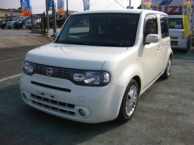 □キューブ 箱型デザインのコンパクトモデル エンジン 1500cc(109馬力)駆動方式はFF コラムシフトのミッションは、4速ATと滑らかな加速と燃費向上を実現燃費がいい。