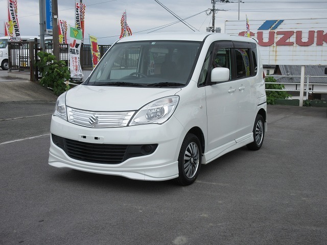 □スズキ ソリオ 1300cc HDDナビ ETC 5人乗りの5ドア小型ハイトワゴンのソリオ。「乗って楽しく、使って便利、燃費も優れたコンパクトハイトワゴン」をコンセプトに開発。新プラットフォームの採用により、全長3,710mm、全幅1,620mmのボディーに、室内長2,130mm(S、Xは2,100mm)、室内高1,345mmとすることでクラストップの広い室内空間を実現。ボディ色:パール